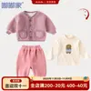 Qiu Duo Meng Conjunto de Sudadera con Capucha de Animales de Dibujos Animados para Niños 2025 Nuevo Primavera y Otoño Niñas Estilo Coreano Casual Pantalones a Rayas