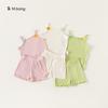 Algodón Puro Sling para Casa Traje para Bebé Niña Ins Verano para Niñas Sling Fino Top para Bebé Set de Dos Piezas