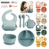 Vajilla de silicona para niños 6 piezas cuchara de silicona para bebé para suplemento alimenticio babero para bebé aprendizaje para comer tazón con ventosa venta al por mayor