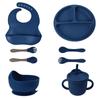 Venta al por mayor de fábrica vajilla para niños traje de alimentación para bebés de silicona de 8 piezas traje de plato de silicona con compartimentos para niños