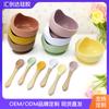 Venta directa de cuencos y cucharas de silicona para bebés, vajilla infantil con mango de madera, cuchara de silicona, cuenco con ventosa para niños, cuenco de silicona para bebés.