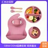 Plato Redondo de Silicona para Cena Babero para Bebé Tazón para Bebé Vajilla Tenedor de Mesa Vaso para Snacks Anticaída Set Stock Listo para Entrega Transfronterizo