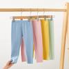 Pantalones de Nueve Puntos para Niños de Rayas Verticales de Colores Caramelo de Primavera y Otoño Transfronterizos Color Sólido Tablero Ligero Pantimedias para Bebé Ropa Exterior Leggings para Niñas