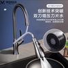 Grifo de cocina transfronterizo de doble tubería con agua purificada, agua potable directa, grifo de cobre para lavar verduras, grifo telescópico giratorio para agua fría y caliente.