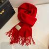 Nueva bufanda de color sólido con borlas de cachemir de alta calidad para mujer, estilo coreano de invierno, temperamento versátil, bufanda roja china, venta al por mayor