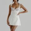 Vestido de Tirantes de Moda Europea y Americana Estilo Caliente Transfronterizo de Amazon Sexy Satén Encaje Falda Línea A Minifalda