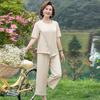 Vestido de verano para madre de mediana edad, estilo étnico, nuevo temperamento, estampado nacional, Hanfu mejorado, camisa pequeña, traje informal de dos piezas