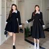 Vestido de Manga Larga, Estilo Femenino, Atuendo para Madre de Mediana Edad, Cuello Sastre, Ropa de Otoño para Mujeres de Mediana Edad y Mayores, Vestido Falso de Dos Piezas, Efecto Adelgazante