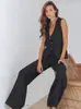 Verano 2025 Nuevo Moda Commuter Europea y Americana Caqui Hombro Descubierto Algodón y Lino Chaleco Pantalón Conjunto de Dos Piezas Venta al por Mayor Ropa de Mujer