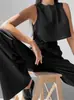 Conjunto informal de dos piezas de estilo europeo y americano de moda de verano 2024 para mujer, sin mangas, de algodón y lino negro.