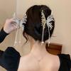 Clip de borla de perla con mariposa incrustada de diamantes de TikTok, ligero, elegante, de lujo, de alta gama, con clip de tiburón, accesorio para el cabello