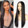 Peluca europea y americana transfronteriza para mujer, extensión de cabello negro largo lacio, tocado de fibra química con clip, media peluca, pelucas con raya en V