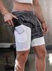 Shorts para Correr para Hombre Camuflaje Gimnasio Shorts Deportivos 2 en 1 Secado Rápido Entrenamiento Fitness Jogging Short Verano con Bolsillo Shorts para Hombre