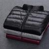 Chaqueta de plumón para hombre, otoño e invierno, plumón de pato blanco, cálida chaqueta acolchada de algodón, abrigo ligero, delgado, cuello corto, chaqueta de plumón, venta al por mayor