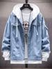 Abrigo de mezclilla con forro polar de invierno para hombre, chaqueta de mezclilla de lana de cordero gruesa y cálida, abrigo holgado de otoño e invierno con relleno de algodón de talla grande a la moda