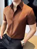 Camisa de primavera y verano 2024 para hombre, de manga corta, ajustada, estilo británico, para negocios, sin planchado, informal, de color liso