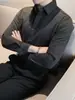 Camisa de manga larga de otoño para hombre, de alta calidad, con adhesivo sin costuras, elástica y de alta calidad, con tapeta oscura, ajustada y de manga larga.