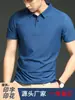 Camiseta de manga corta de verano para hombre, polo de seda helada con solapa, fina, sin costuras, para negocios, sin planchado