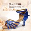 Zapatos de baile latino de satén de tacón alto para adultos, zapatos de baile de mujer con suela suave, comercio exterior azul, microempresa Taobao, una generación de cabello