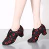Nuevos zapatos de baile de caña alta de tela Oxford, zapatos de baile cuadrados, zapatos de espectáculo de suela blanda para mujer, zapatos de práctica, zapatos de baile Sunderman