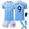 2324 Uniforme de Fútbol Local del Manchester City 17 Devubuda 9 Harland 10 Gloria Azul Palabras Edición Temprana con Calcetines