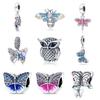 Venta al por mayor de accesorios de joyería DIY chapados en plata de cobre con cuentas de mariposa, libélula, abeja y búho, de gran venta transfronteriza en Europa y América.