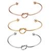 Pulsera nudo de amor de acero inoxidable de 2 mm de grosor, pulsera abierta en forma de corazón, pulsera nudo, brazalete, joyería