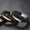 Temu oferta especial pulsera tejida de cuerda de cuero PU para hombre, pulsera de temperamento y personalidad, pulsera de aleación con hebilla magnética, joyería