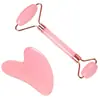 Fábrica de Origen Rodillo de Jade de Cuarzo Rosa Set de Masaje Tabla de Raspado de Jade Rodillo de Doble Cabezal Palo de Masaje Facial