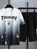 Traje Degradado de Seda de Hielo de Dos Piezas para Hombre Camiseta de Manga Corta Verano Moda Nuevo Casual Shorts Deportivo Ropa de Hombre Guapo