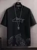 Traje de camiseta de manga corta para hombre en verano Nuevo estampado de montaña nevada Moda Trendy Estilo coreano Slim Talla grande Set deportivo de dos piezas