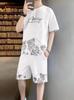 Traje casual de manga corta para hombre, estilo coreano de verano, nueva moda, pantalones cortos estampados, traje deportivo juvenil de dos piezas