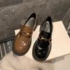 Zapatos de cuero marrón estilo británico retro para mujer, otoño e invierno 2023, nuevos zapatos japoneses JK de una sola capa, mocasines de plataforma combinables.