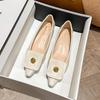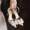Zapatos de boda estilo francés color champán para mujer, elegantes zapatos de dama de honor con perla para ceremonia adulta, de tacón alto y una sola capa, 2024