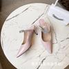 Zapatos Florales para Mujer 2022 Nuevos Franceses de Punta Color Sólido Hebilla con Explosión Celebridad de Internet Sandalias de Tacón Alto Delgado