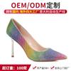Oem Personalizado Estilo Europeo y Americano Punta Afilada Degradado Colorido Moda Tacones Altos Diamante Caliente Zapatos de Moda con Clase Oem