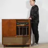 Gramófono Retro de Madera Maciza con Radio USB Combo de CD Altavoz Tocadiscos Antiguo de Madera para Negocios