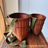 Cesta de bambú roja vintage, cesta de piel de bambú gruesa con capa superior y correa, cesta de bambú para recoger frutas y verduras, accesorios de rendimiento