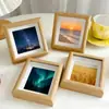 Marco de Fotos Hueco de Madera Cuadrado de 4 Pulgadas Mini Marco de Fotos Creativo al Óleo Pastel Caballete de Exhibición de Escritorio DIY de Caligrafía de Madera