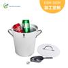 Blanco con tapa con pala de aluminio cubo de hielo para cerveza binaural de metal redondo cubo de hielo de doble capa de chapa de hierro galvanizado para exteriores