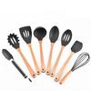 Venta al por mayor de fábrica utensilios de cocina de silicona de ocho piezas resistentes a altas temperaturas juego de espátulas de cocina de madera espátula de silicona