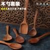 Juego de 7 Piezas Haoyuan Teca de Espátulas y Cucharas de Madera de Acacia, Cuchara de Sopa de Madera con Mango Largo, Espátula de Madera, Utensilios de Cocina, Espátula de Cocina con Mango Largo, Yuanhao