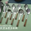 Espátula de acero inoxidable 304 cuchara para freír con mango largo cuchara para sopa espátula para el hogar espátula de chef mango de madera pala para cocinar juego de utensilios de cocina