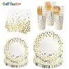 Elegante Set de Artículos para Fiesta de Lunares con Foil Dorado Vajilla Desechable Platos para Postre, Vasos, Servilletas, Cubiertos y Popotes