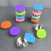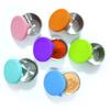 Vaso para condimentos redondo de acero inoxidable 304 con tapa de silicona, plato para mojar condimentos portátil, tapa de silicona para vaso