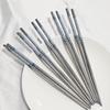 Palillos redondos de acero inoxidable de porcelana azul y blanca con hilo estampado, palillos huecos, juego de regalo antideslizante para restaurantes de comida rápida y hoteles.