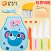 Delantal de dibujos animados para niños, cuchillo de plástico para frutas, pelador de frutas y verduras, cuchillo de madera, mono de bebé, babero, cuchillo de ondas para patatas