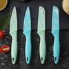 Cuchillo de fruta de acero inoxidable, pelador creativo para el hogar, portátil, con mango de plástico, cuchillo de color, cuchillo de cocina para melón y fruta.
