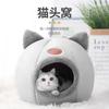 Otoño e Invierno Nuevo Kennel para Perros con Forma de Gato Invierno Popular en Internet Cálido Semicerrado Nido para Gatos Colchoneta Suministros para Mascotas Casa para Gatos