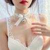 Ropa Interior Sexy Fuego Naranja Encaje Cuello Ajustado Accesorios Chica Gato Sirvienta Lazo Campana Collar para Cabello